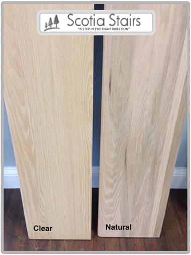 Q8: Can you confirm if " Natural " or " Clear " is the grain face profile you prefer. Oak is shown in the sample and shows the typical face grain differences. On standard treads there is an up cost of $5.00 per tread for the "Clear" profile. There is no up cost for the clear profile on our full false treads, simply customer preference.